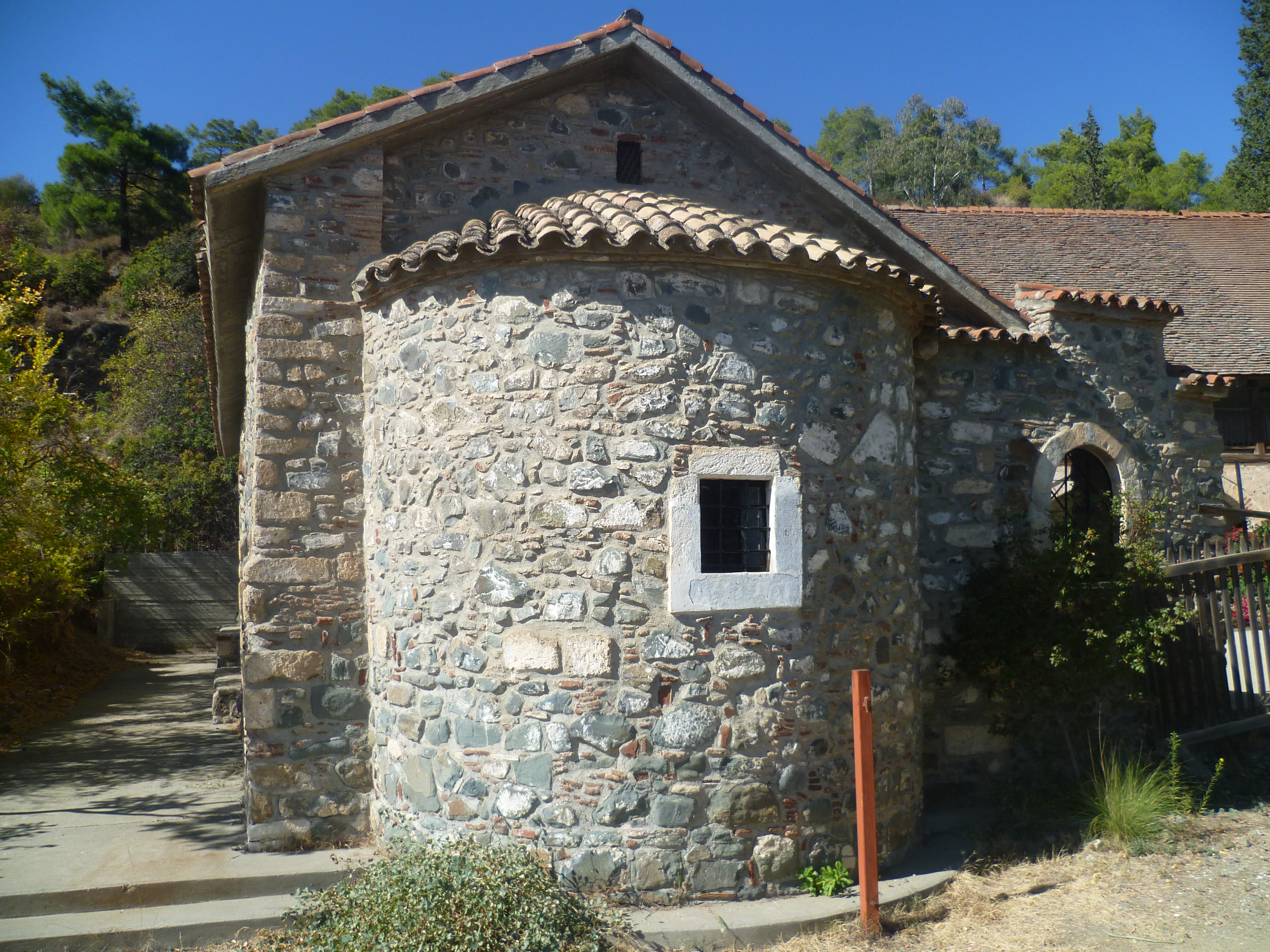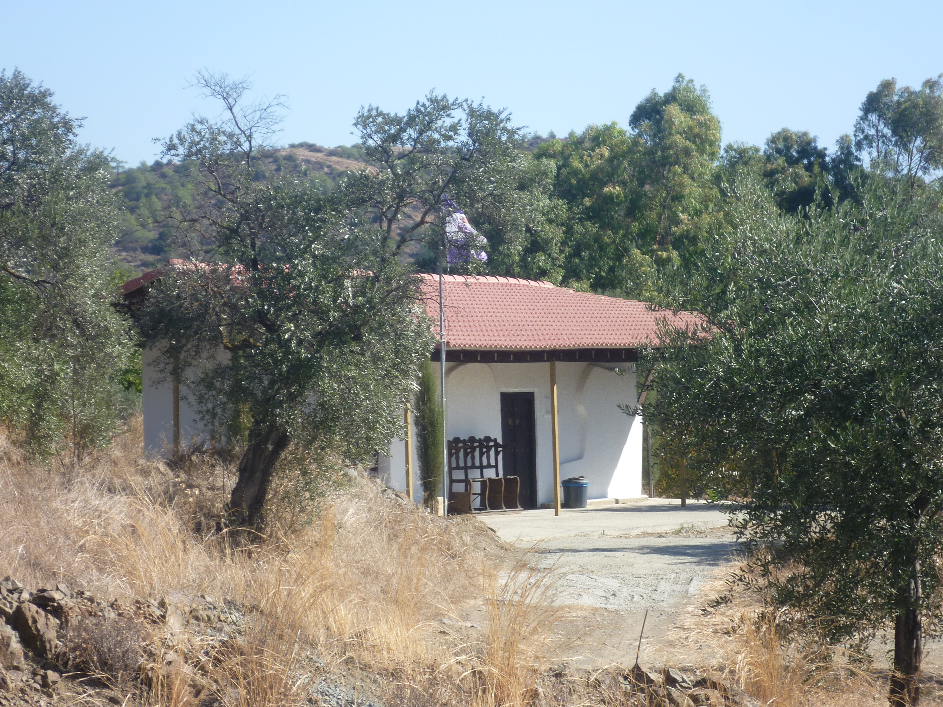 At 1 hour 55 minutes you will pass the small church of Agios Georgios to the right of the road. There are some cool shady benches here and this is a good place to catch your breath. [GPS: 34.55484N, 33.16686E]