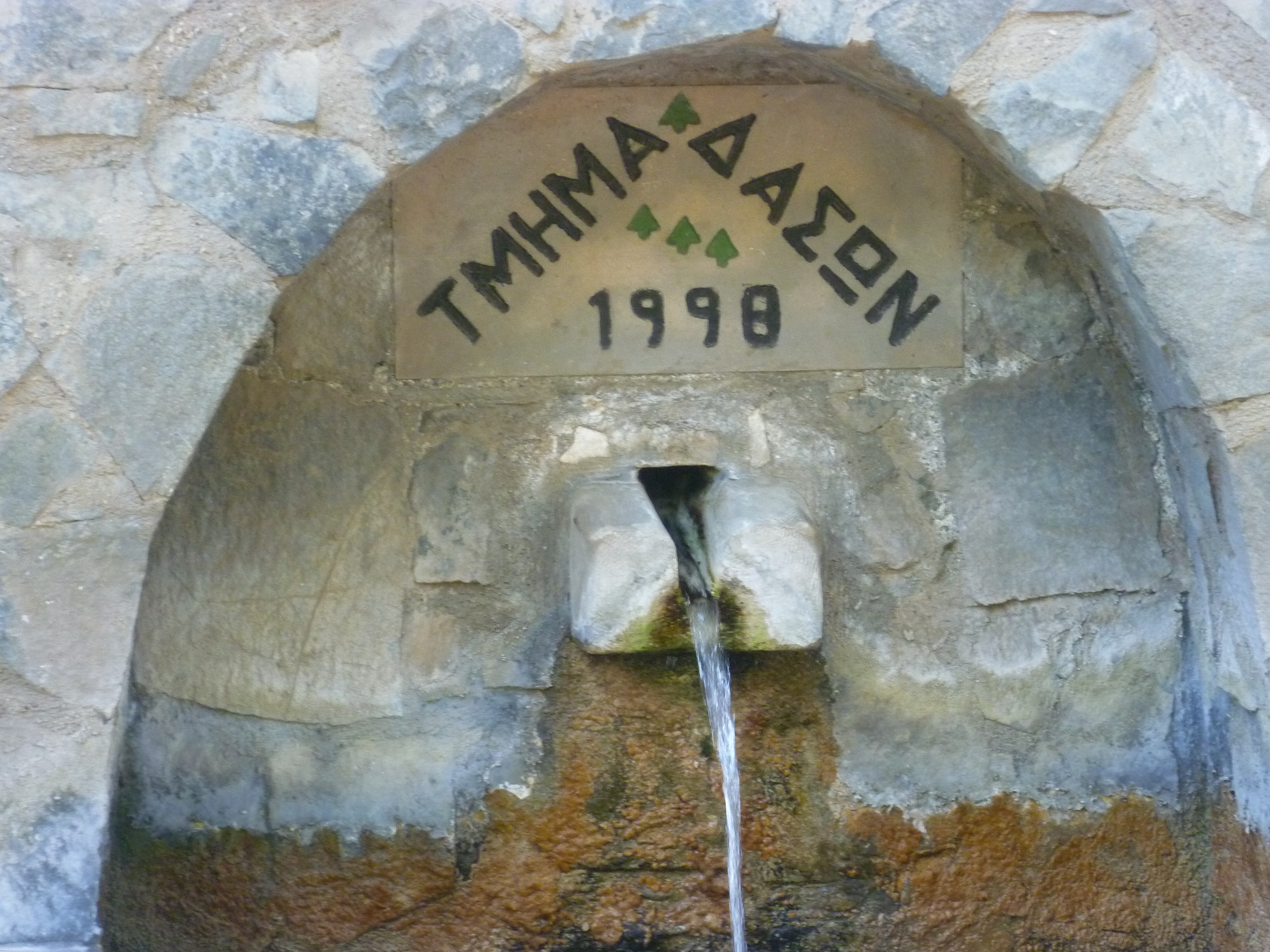 Take the track to Vavatsinia (the first dogleg right, heading downhill) and in another ten minutes (4 hours 55 minutes) you will arrive at a beautiful spring with benches and drinking water: ‘Kakarmata Vrisi tou Petri 670m’. [GPS: 34.55159N, 33.14248E] A lovely place to rest awhile.