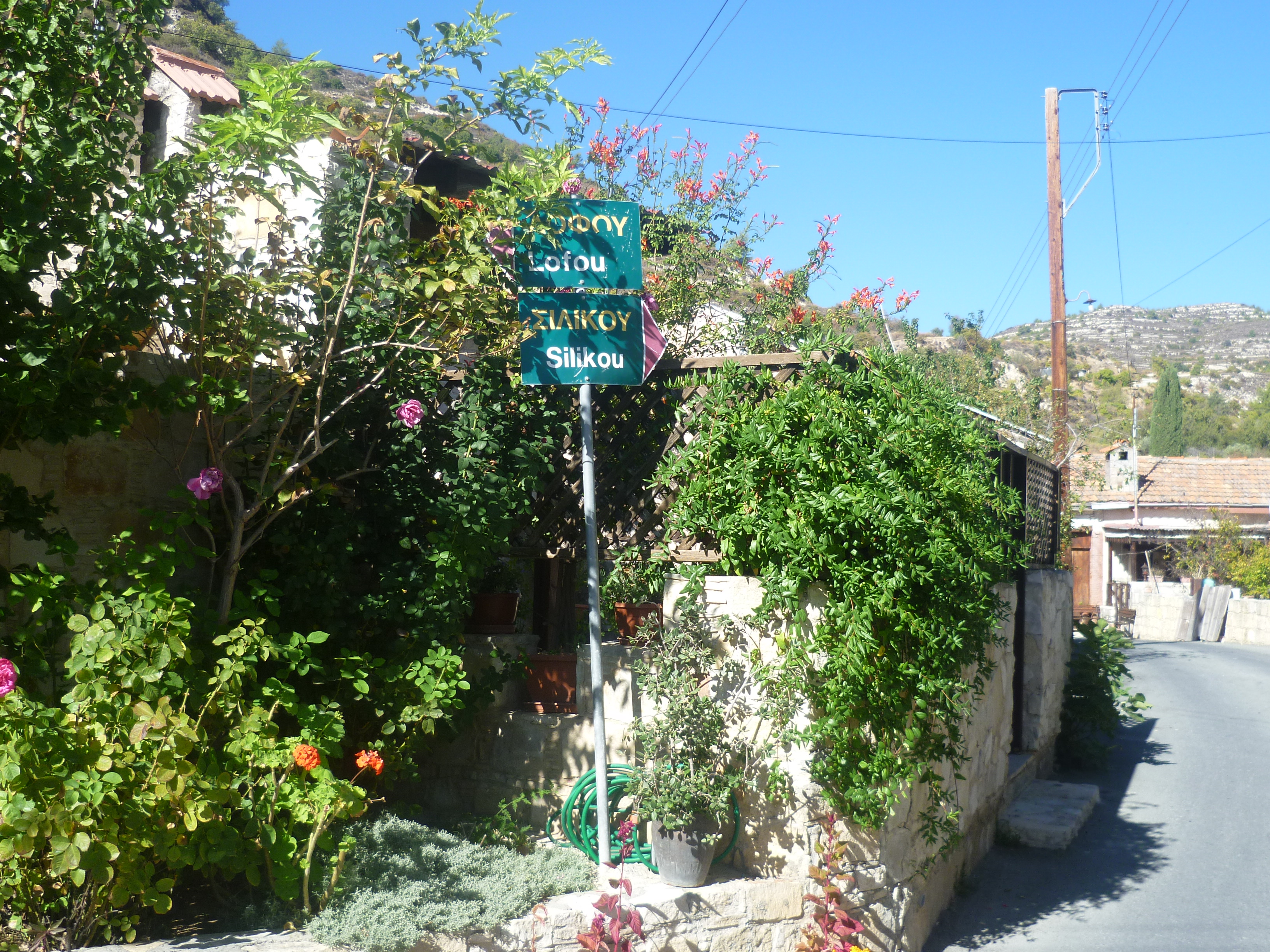 Follow the road signs to Lofou (via Foti Pitta Street) as your route climbs away from Pera Pedi and opens out into views of the valley, and the villages that you have already walked through, to your left.