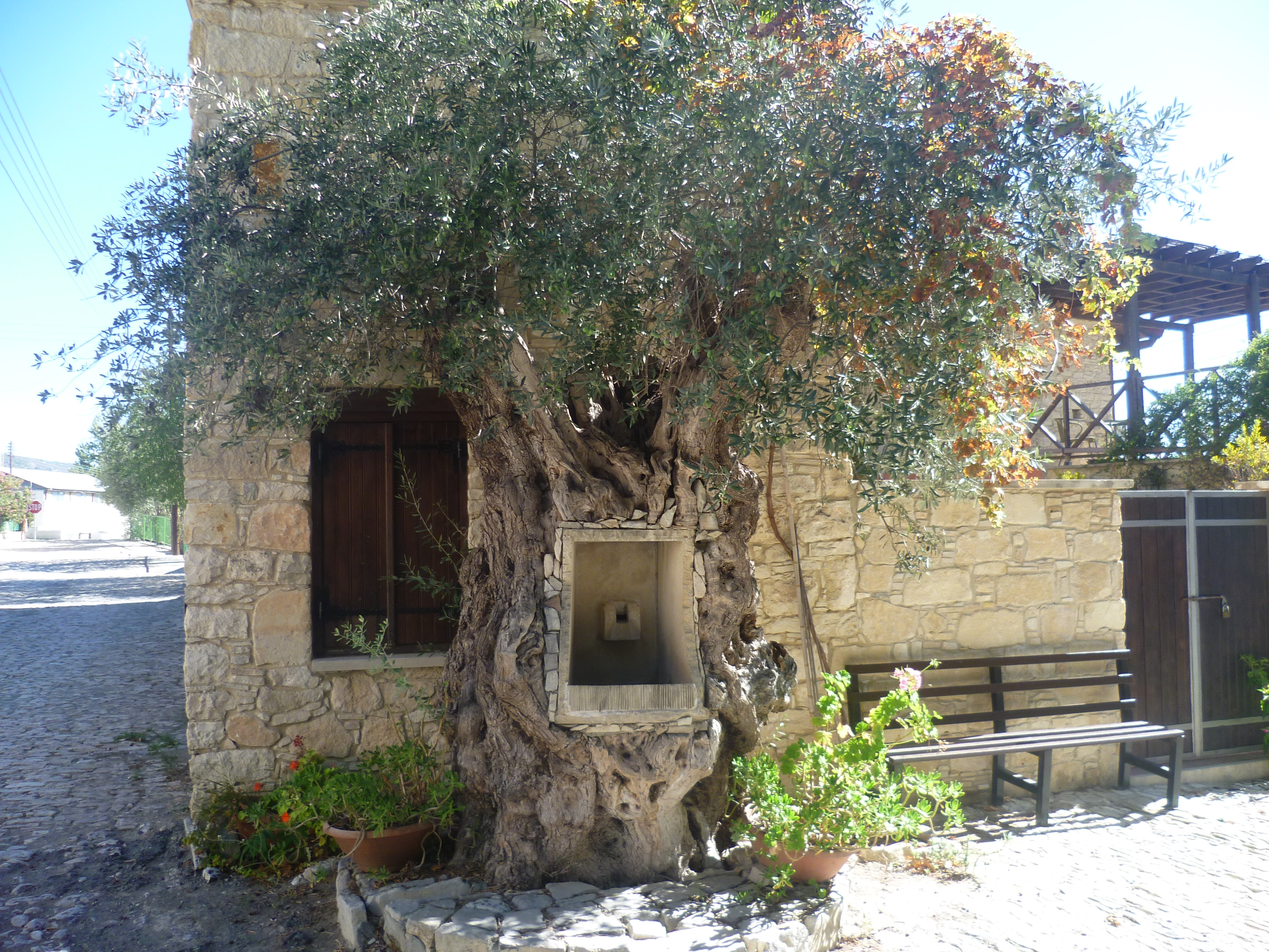 Continue your walk to the village centre – this is a long uphill haul – which you will reach after about 2 hours 40 minutes. Silikou is one of the Commandaria wine villages and there is a small wine museum here, also a couple of coffee shops where you can buy a cold drink. Next to the village church you can see the Lavrania spring which is set into the trunk of an ancient olive tree.