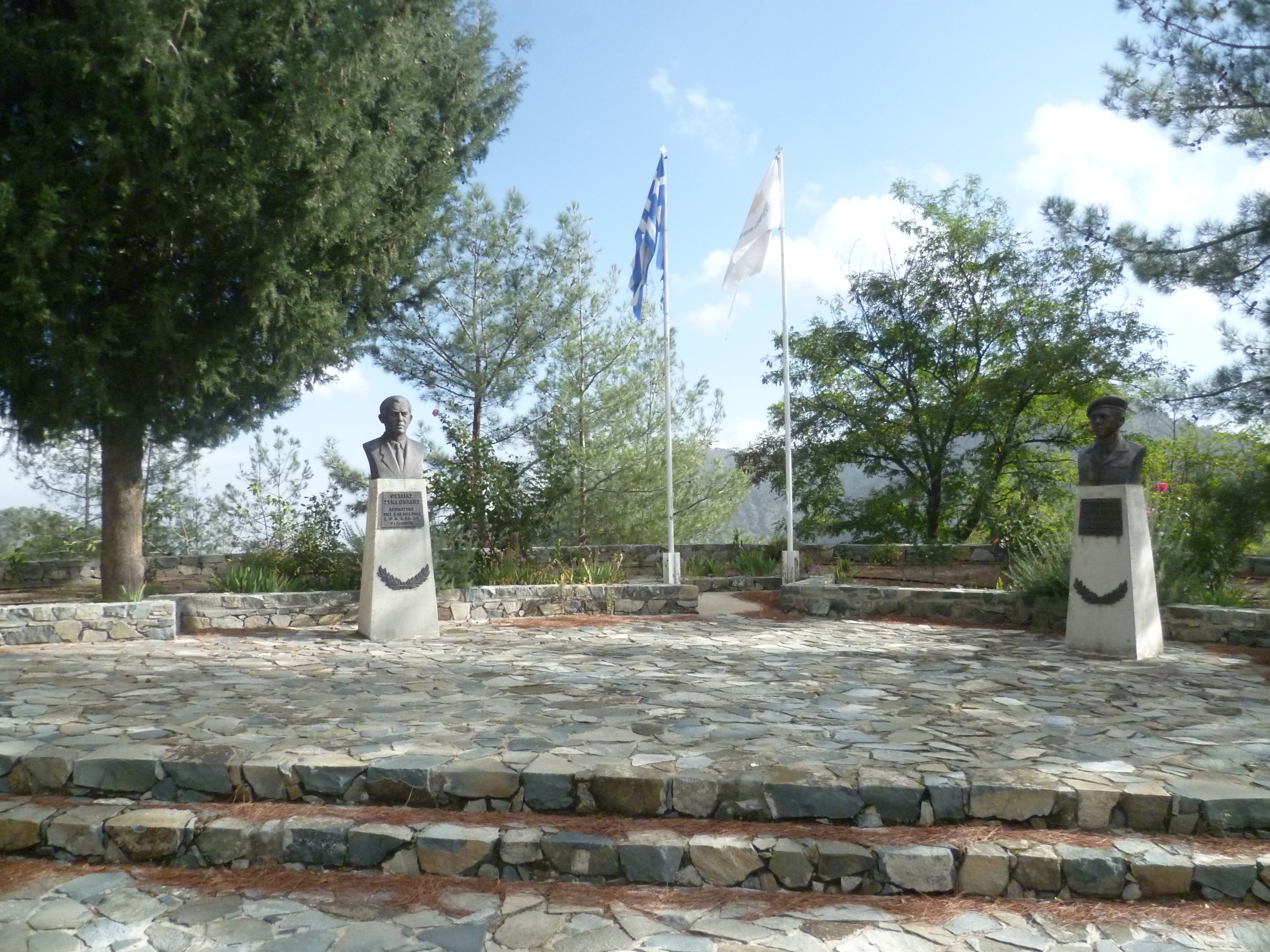 Walk along the road back into the village of Lagoudera, passing a monument (on your left) to two EOKA fighters.