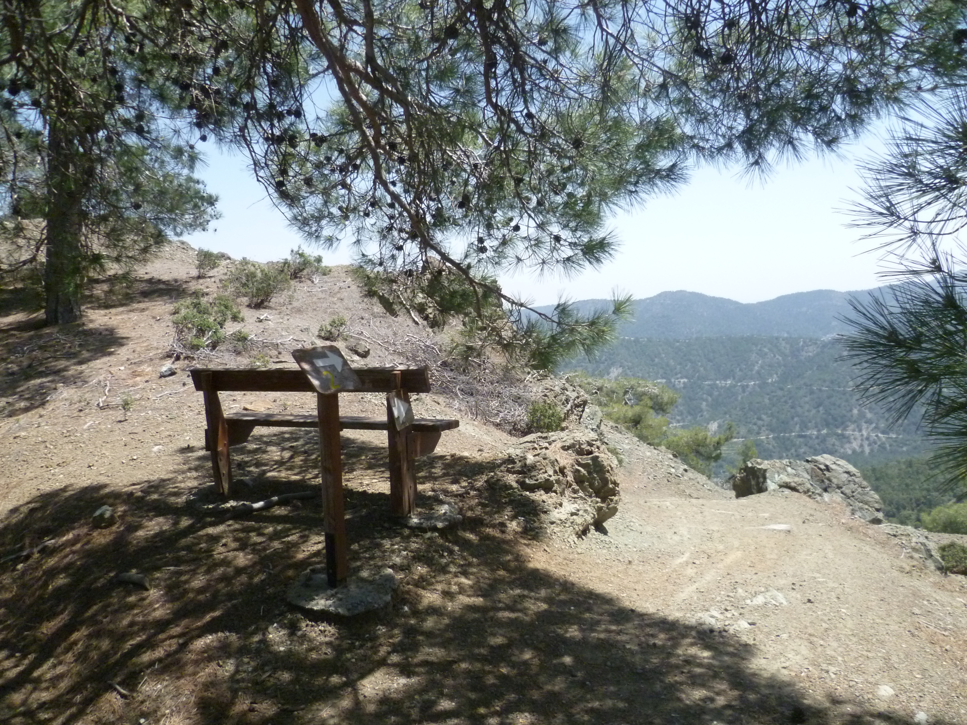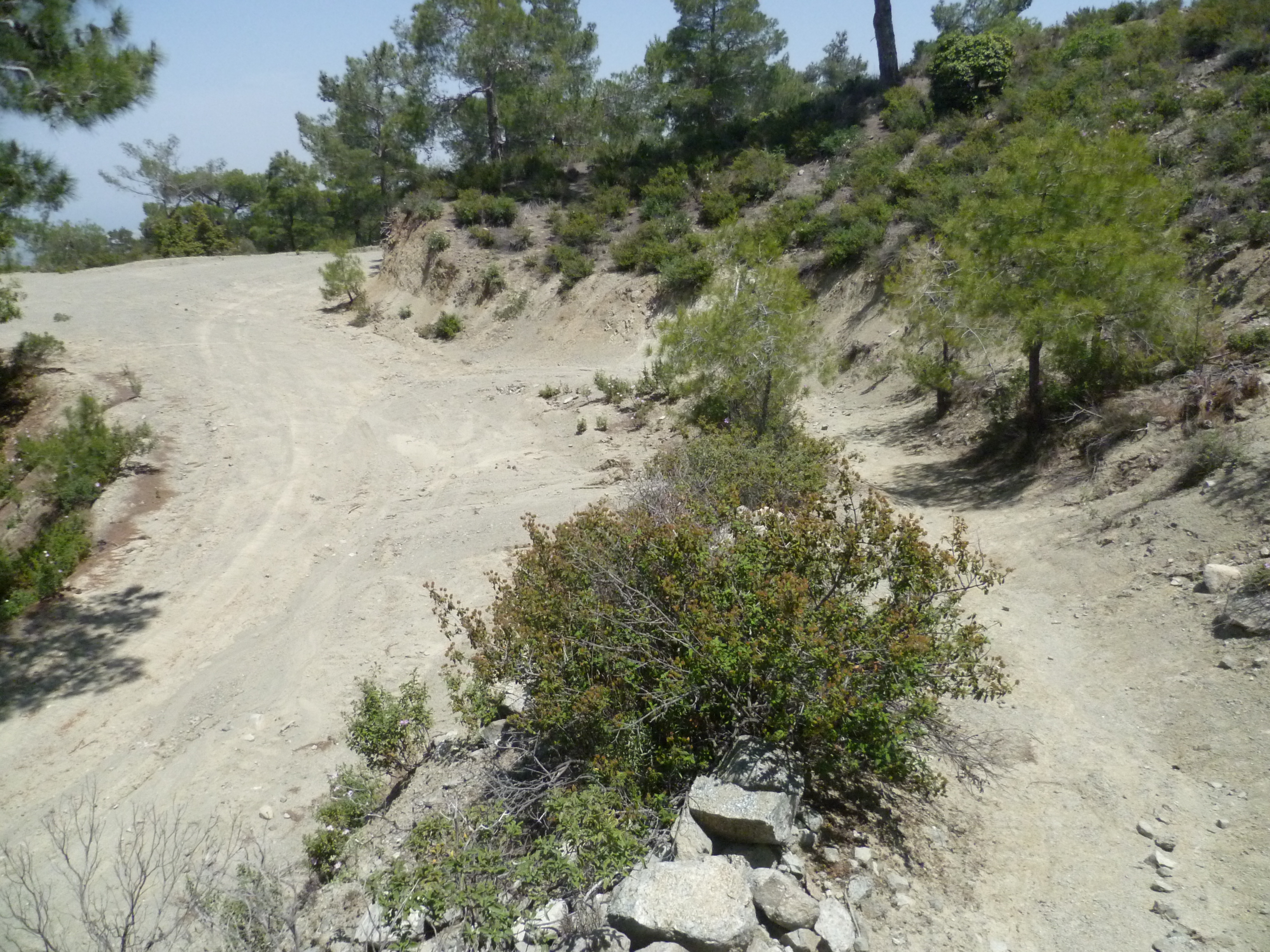 Instead, the walk now continues from the point at which the F936 was first reached. There is a sign there pointing back up the trail to some EOKA hideuts.