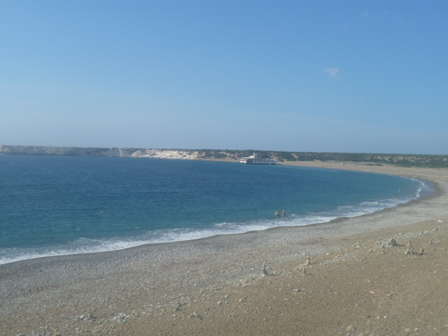 At 4 hours 20 minutes reach a T-junction with the coast road (also an earth road) where you rejoin the E4 and turn right. There are (welcome!) signs to the Lara Bay restaurant. Turn almost immediately left towards the coast and in a further 10 minutes you will reach Lara Bay.