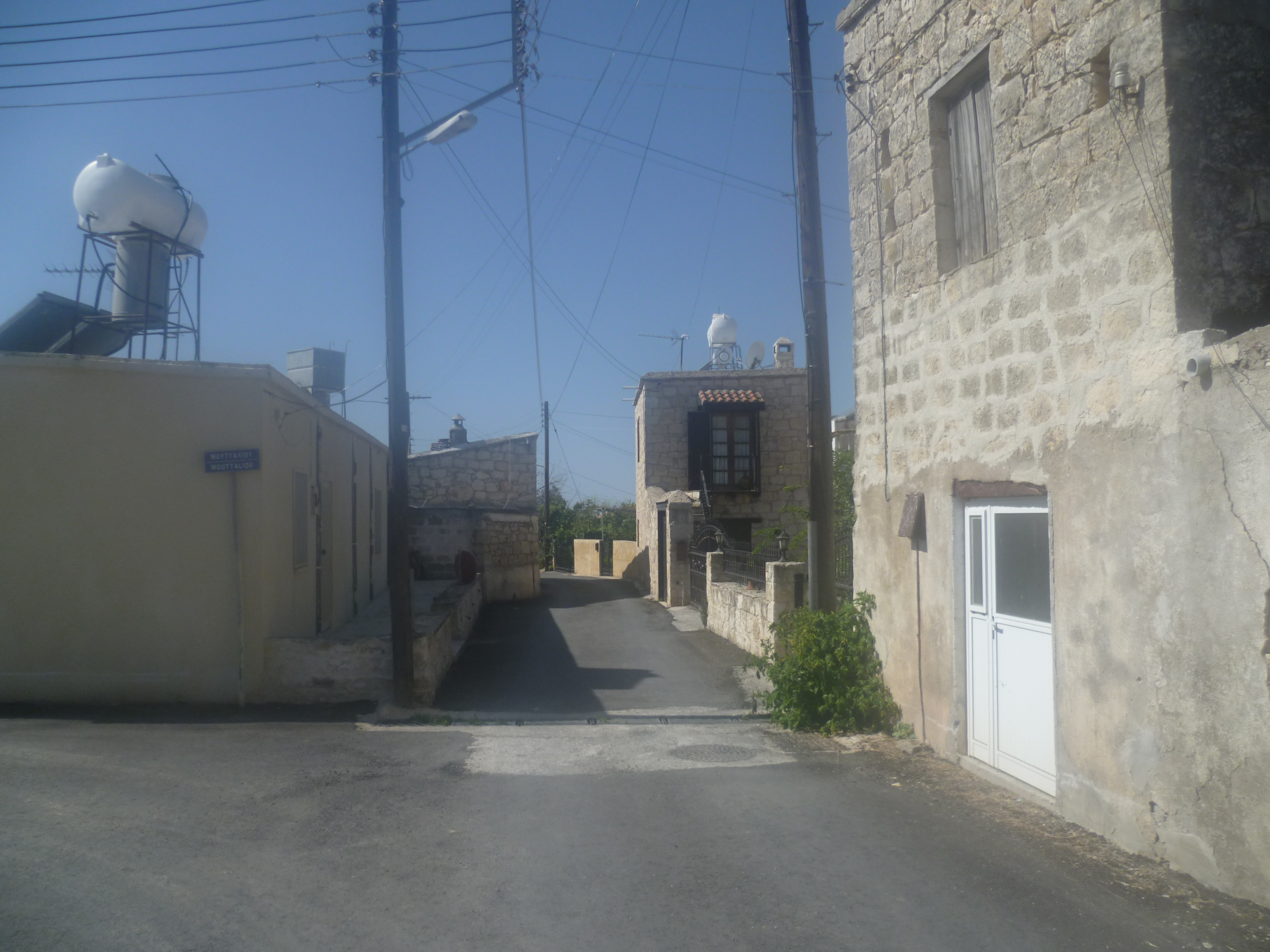After approximately 250 metres turn right down Agiasmatos Street. Follow this road all the way through the village (ignoring Moutalliou Street on your left) as indicated below…