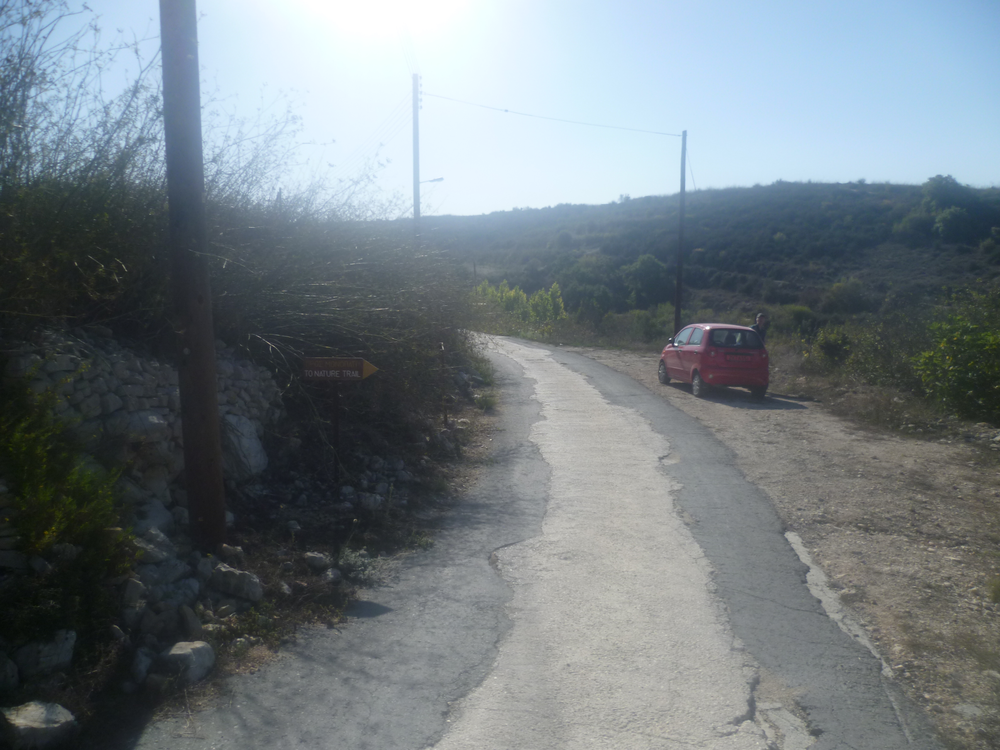 In case the board is missing – a not uncommon experience in Cyprus – the trail can be identified by counting four telegraph poles from the street sign on the left hand side. The start of the trail is directly opposite the fourth pole, marked with the identifier 3/82/13/11. The photos below should help: