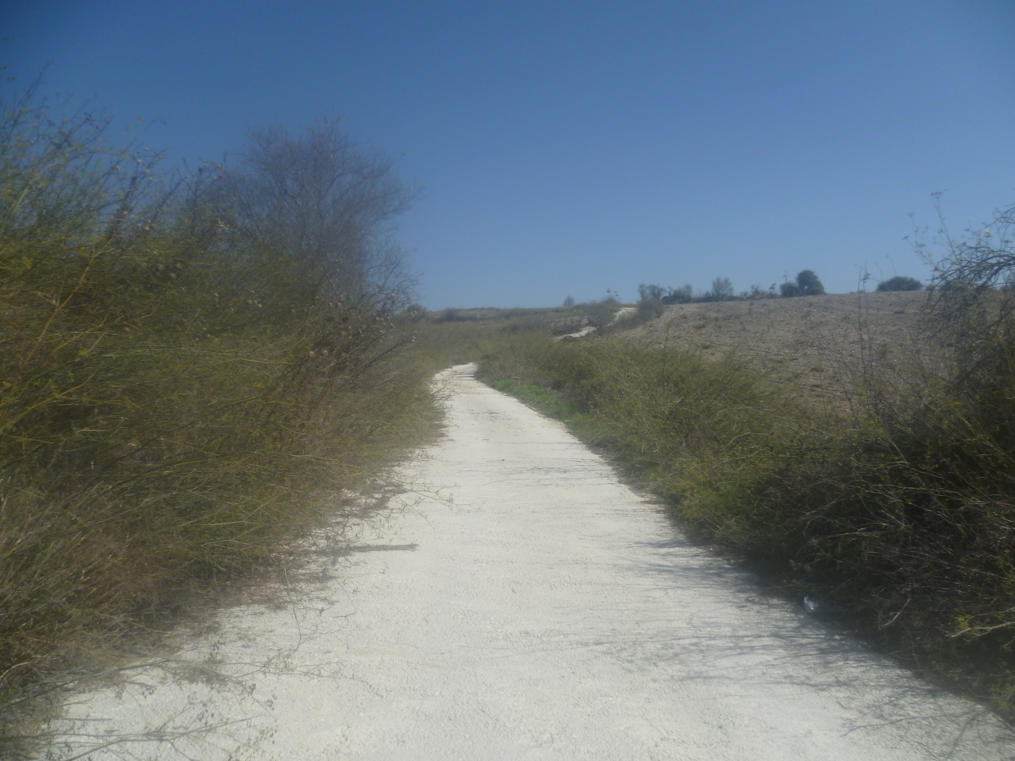 If you wish to carry on there is a dirt track on the other side of the asphalt road. Head along this…
