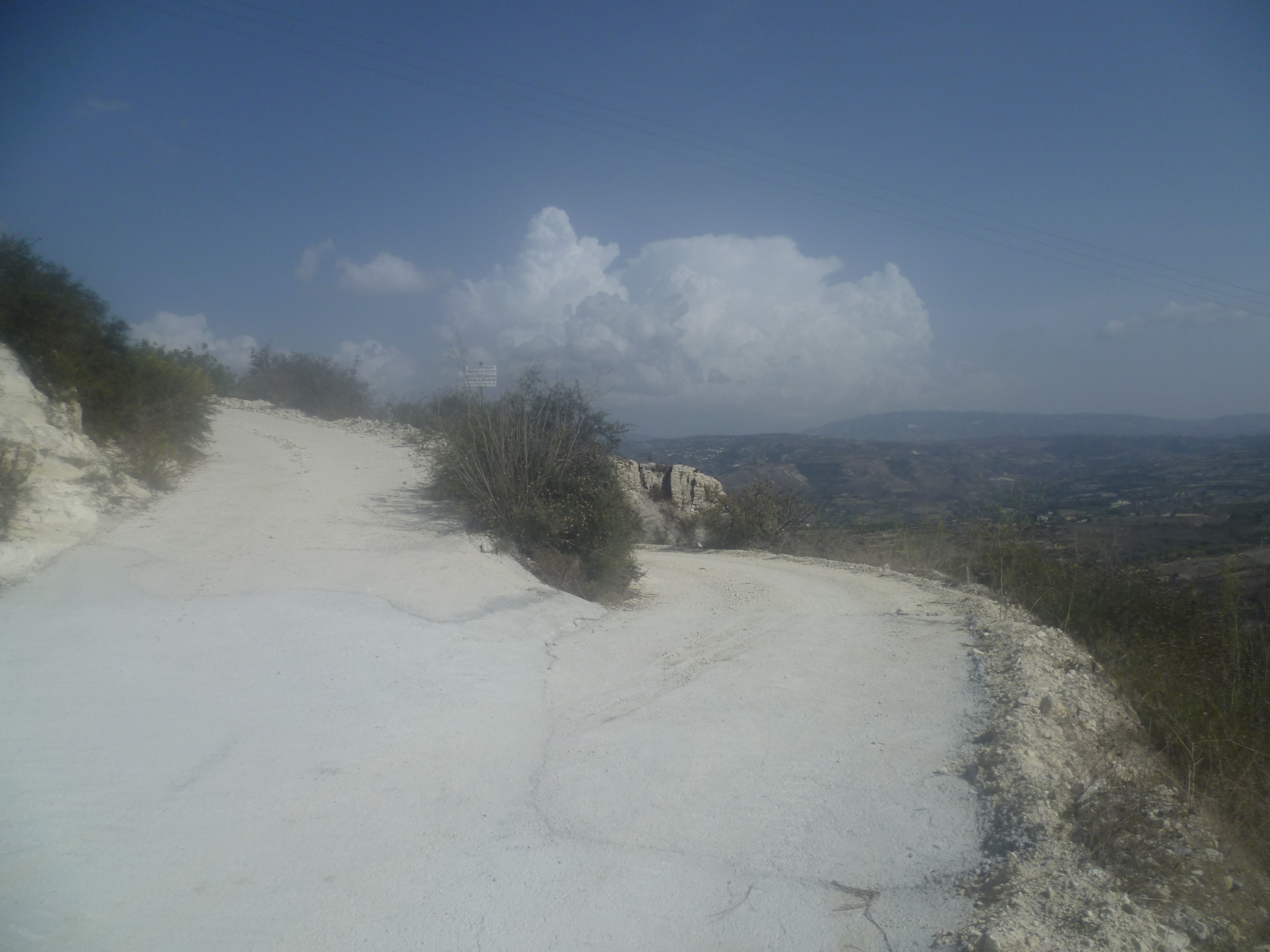 At the junction itself, ignore the track off to your left and, with the telegraph pole on your left, take the concrete road straight ahead which leads you downhill. This is effectively your path for the rest of the walk back to Miliou.