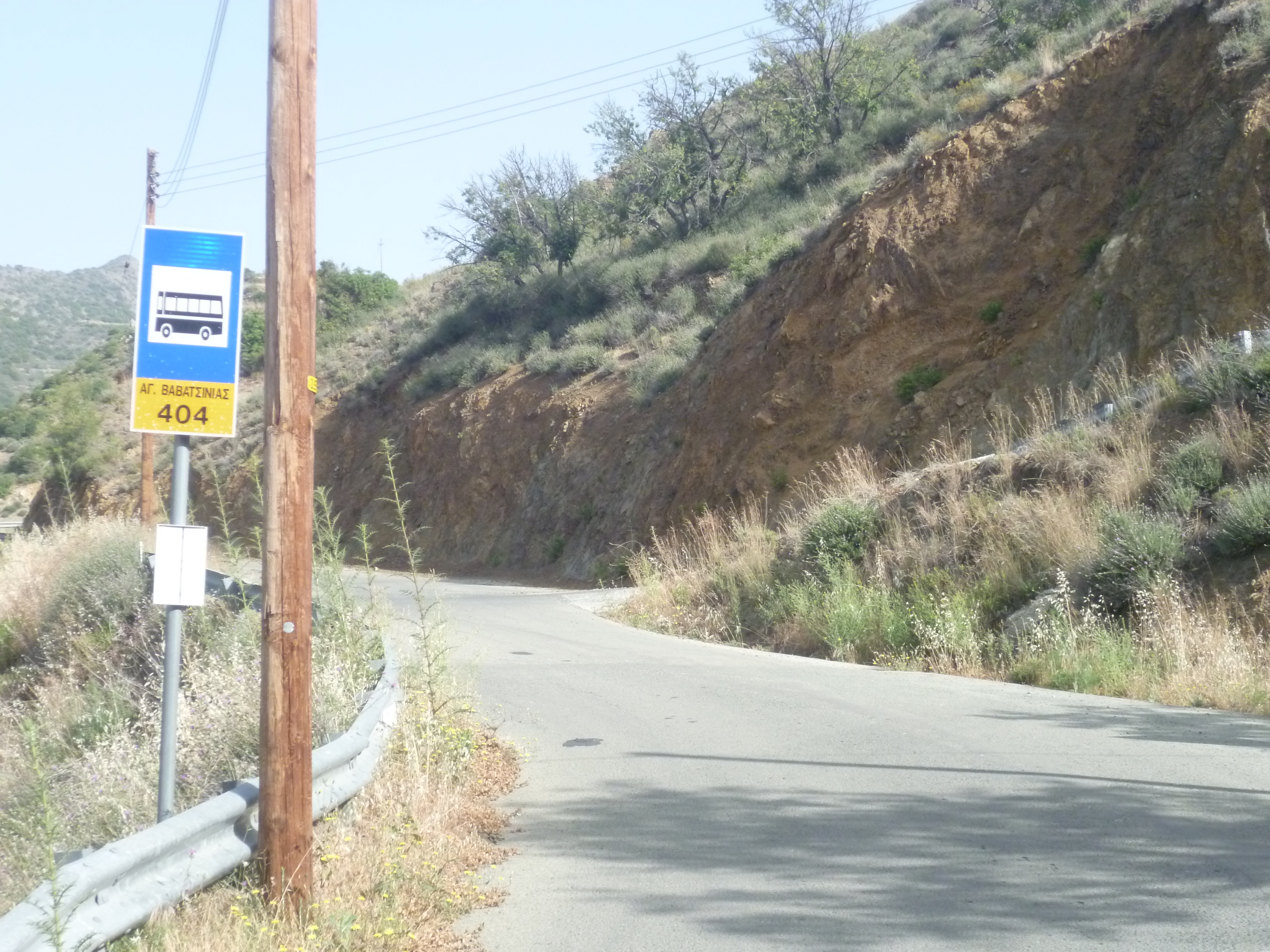 Some 10-15 minutes from Kionia (5 hours 30 minutes) you will see a blue road sign pointing ahead to Vavatsinia and Lefkara and right to ‘Agioi Vavatsinias 10km’.