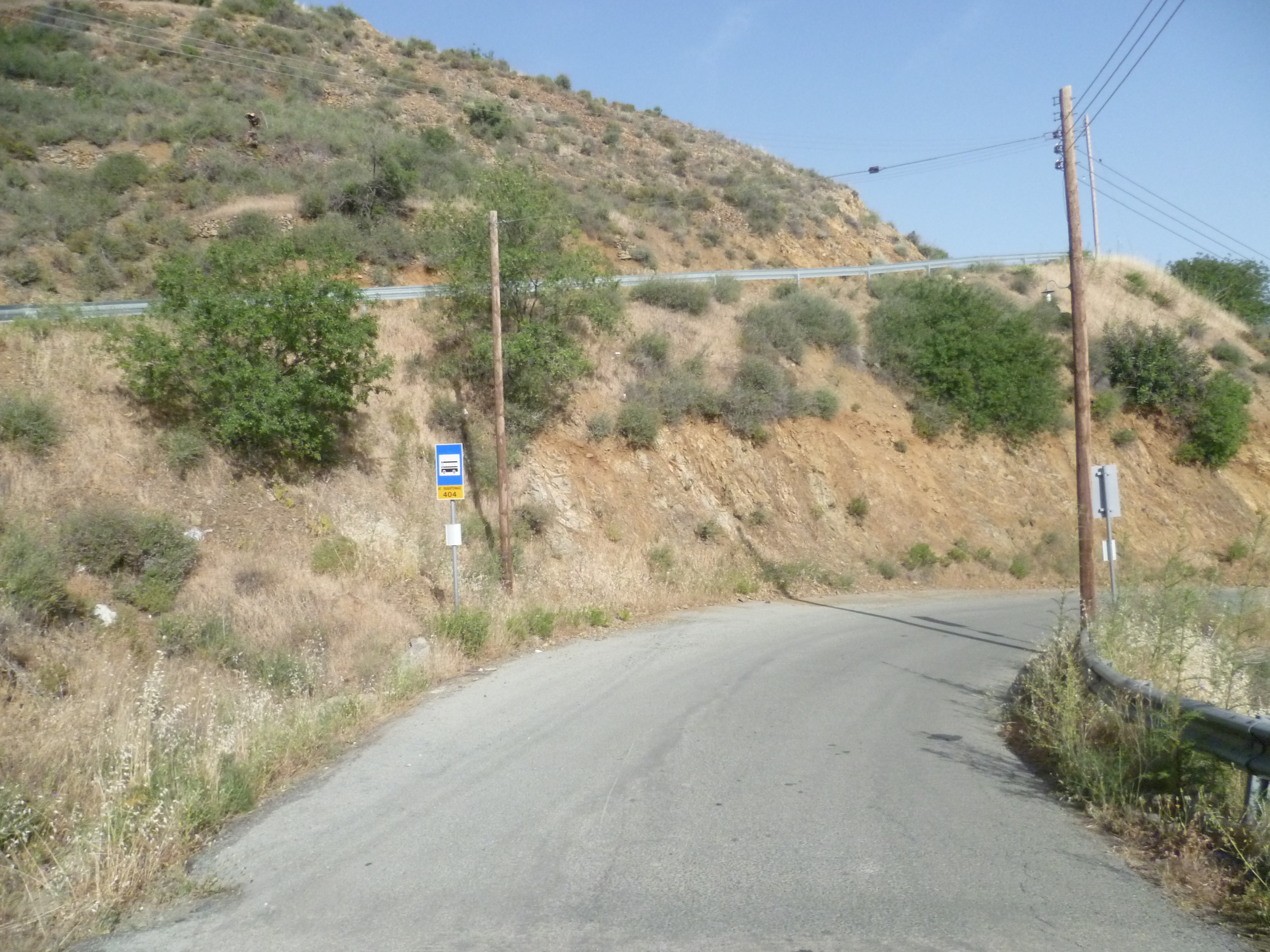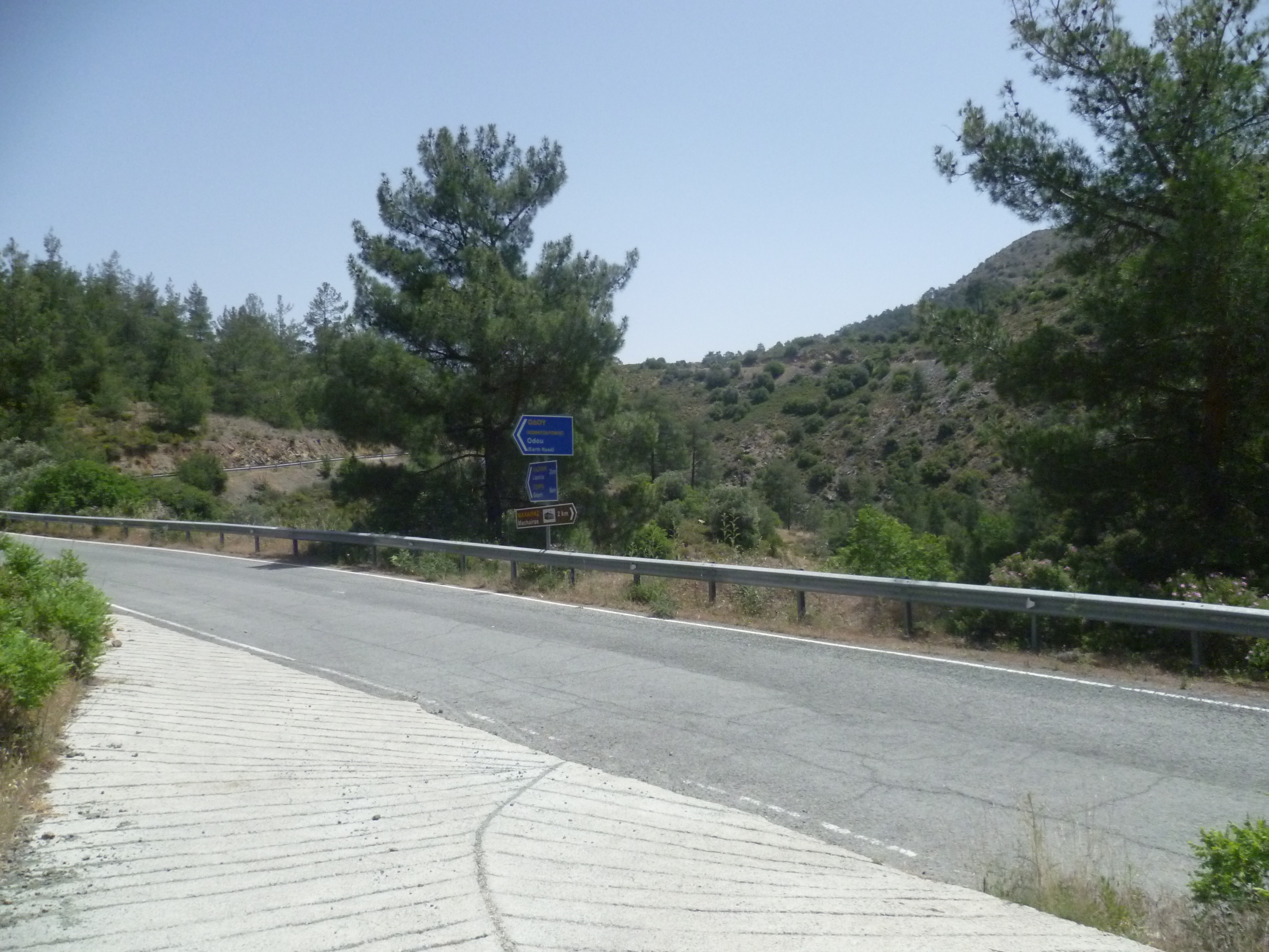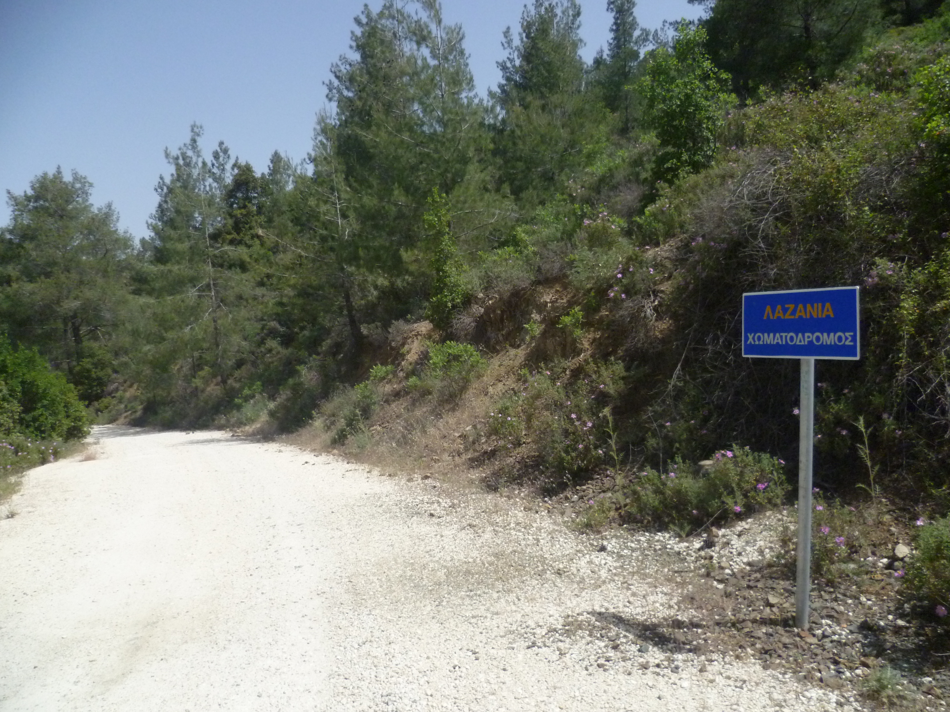 This is a country road between Odou and Lazanias but you are unlikely to see any traffic on it. As the road winds downwards it becomes of inferior quality until, after a leisurely 2 hours 15 minutes, it becomes an earth track.