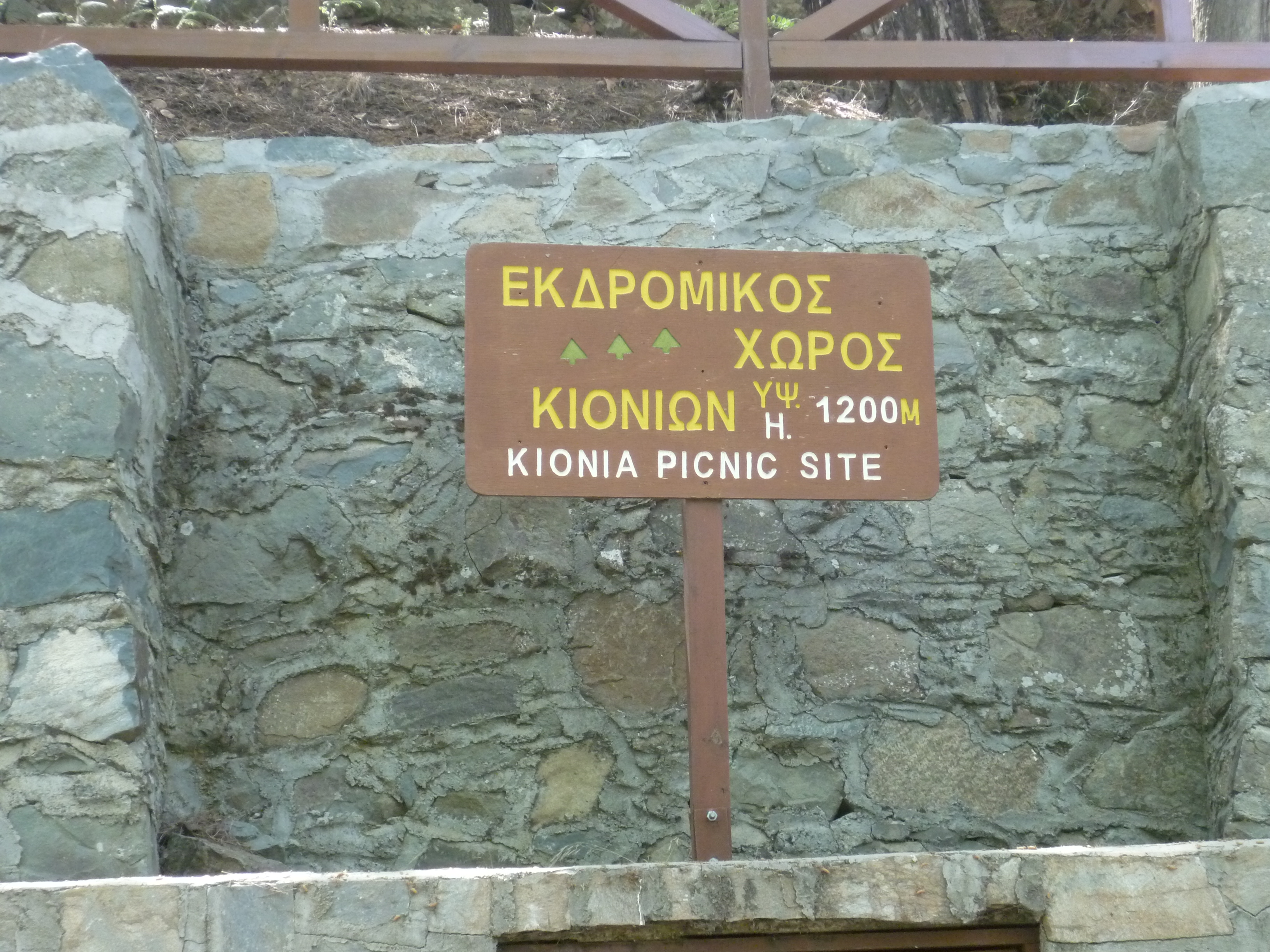 The fire lookout station is a little further up the hill to your right but you will probably decide that you have done quite enough staggering uphill for one day. In which case, follow the asphalt road as it descends to arrive in ten minutes (5 hours 15minutes) at the Kionia picnic site, just a little to the left of the junction with another road.