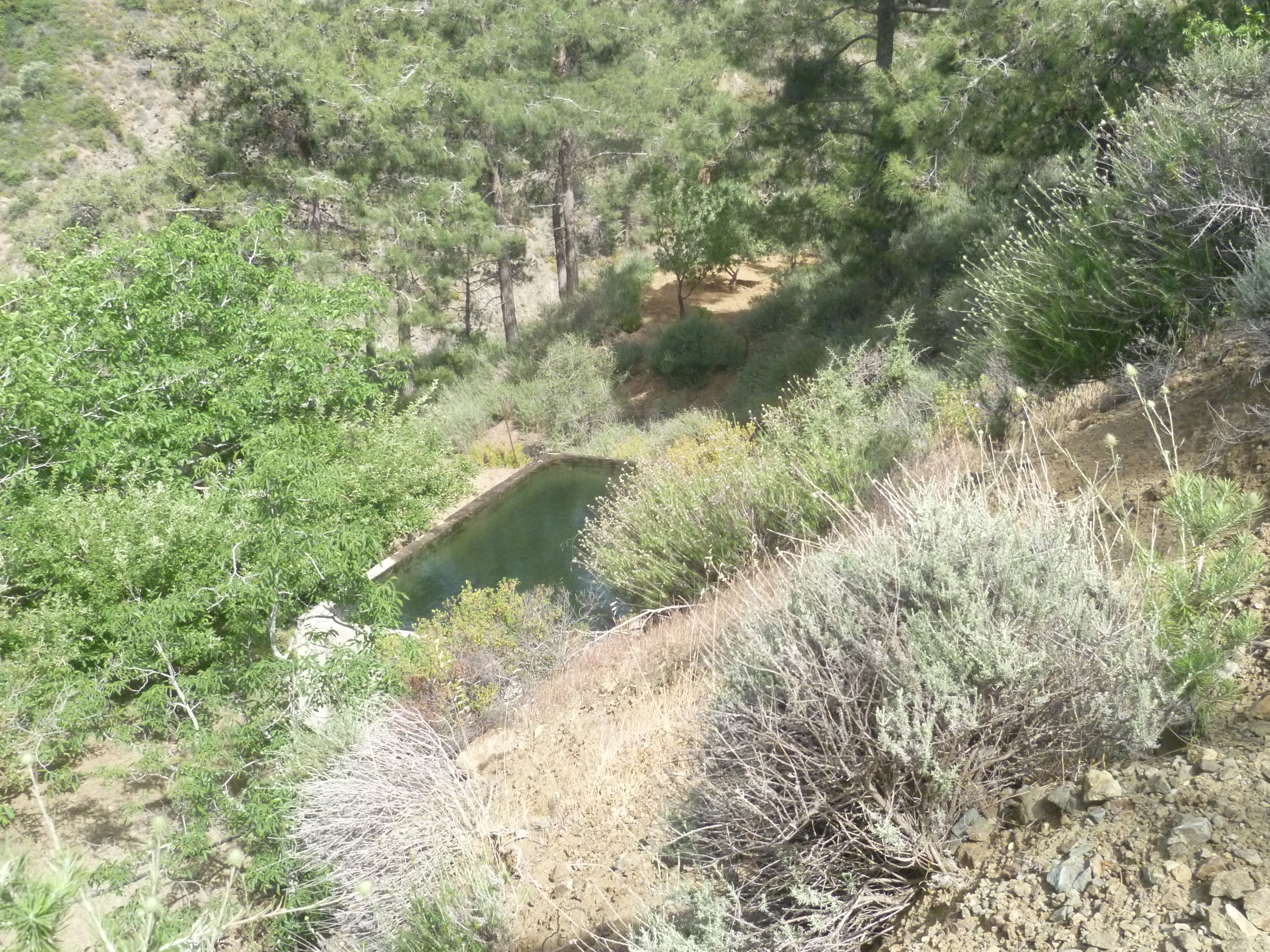 This remote walk starts from the village of Agioi Vavatsinias, to the south-west of the Machairas Forest. We drive into the small village centre and then take the road (west-north west) from there signposted to Machairas – you can park anywhere along this road, although we usually choose a spot on the right-hand side some 200 metres beyond the bus stop. [GPS – 34.8815692N, 33.1881835E]
