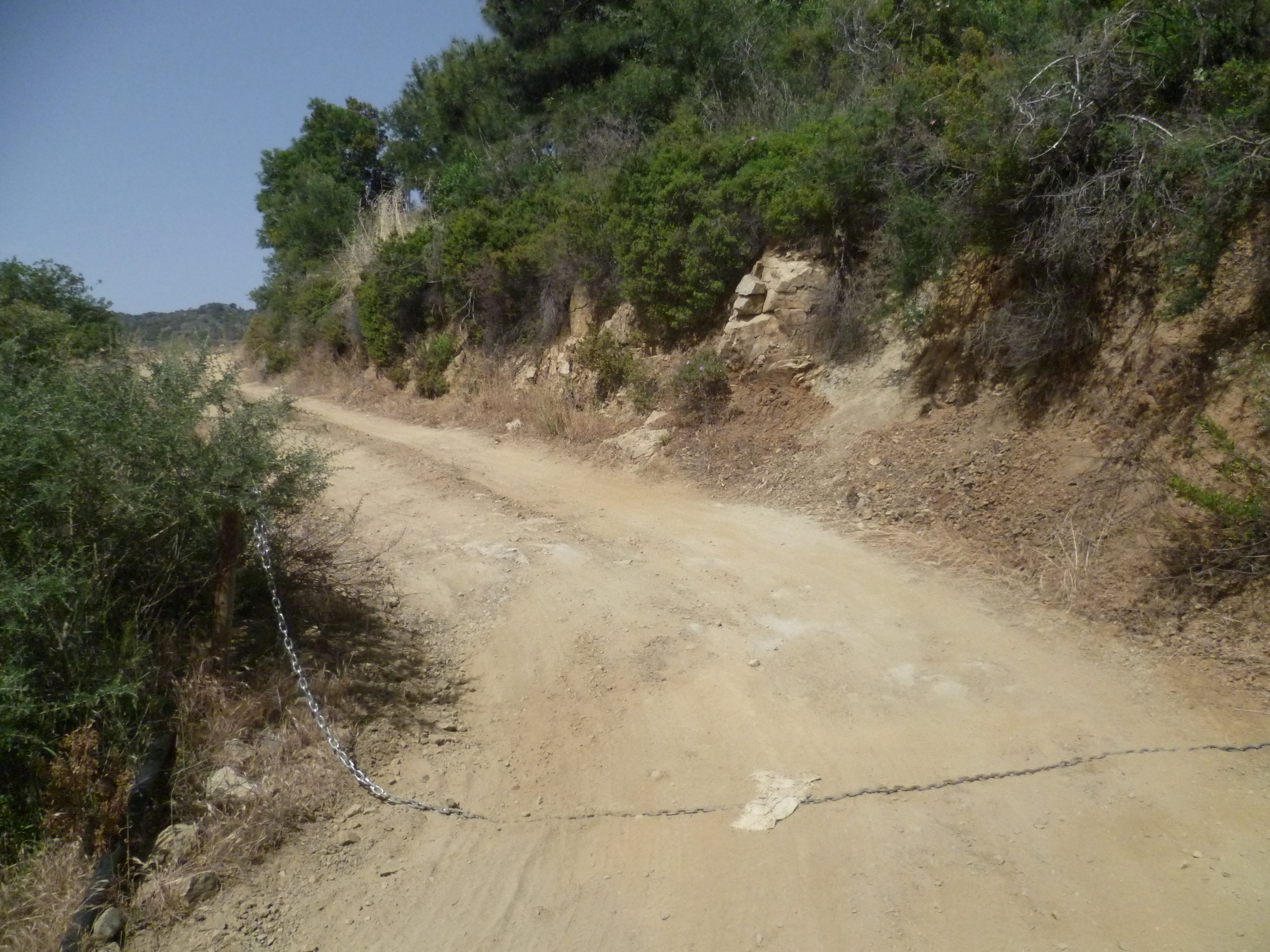 Although you are headed for Machairas Monastery and beyond, you will need to take the left-hand fork here i.e. the one which is NOT signposted to Machairas! The road descends downhill, heading in a north-westerly direction into a large valley. You will need to need to follow this main track for the next hour and a half, always keeping the valley bed to your left.