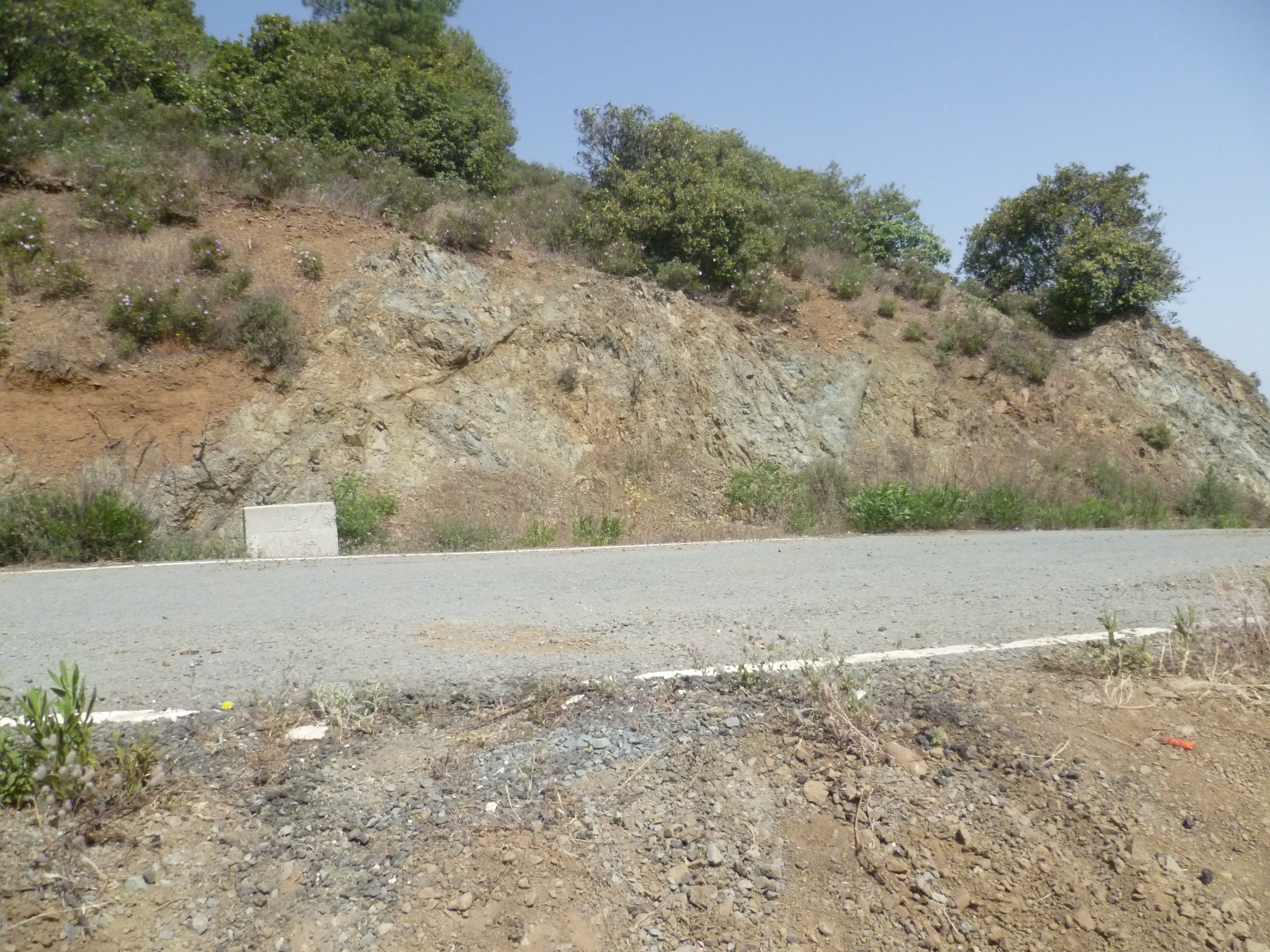 The track is quite steep in places here but persevere and after 1 hour 35 minutes and a final scramble up a few metres of loose red earth at the end of the track, you will arrive at an asphalt road. [GPS – 34.9068868N, 33.1760368E]
