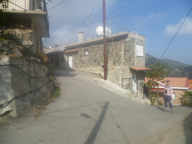 As you arrive in Lagoudera you will see a pink house on your right. [GPS: 34.962099N, 33.010330E] Turn left here…