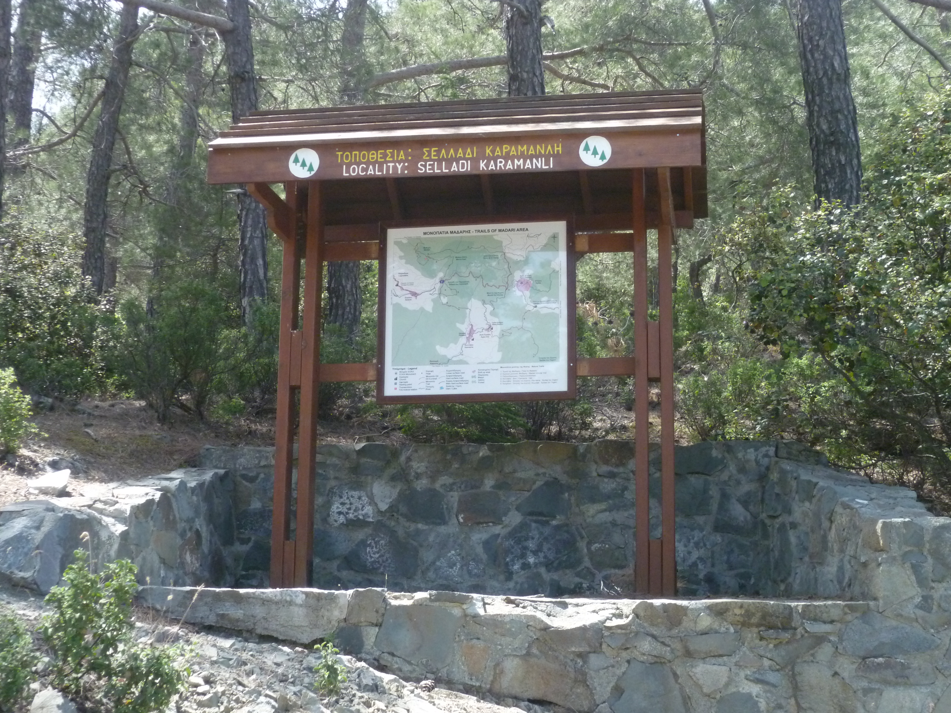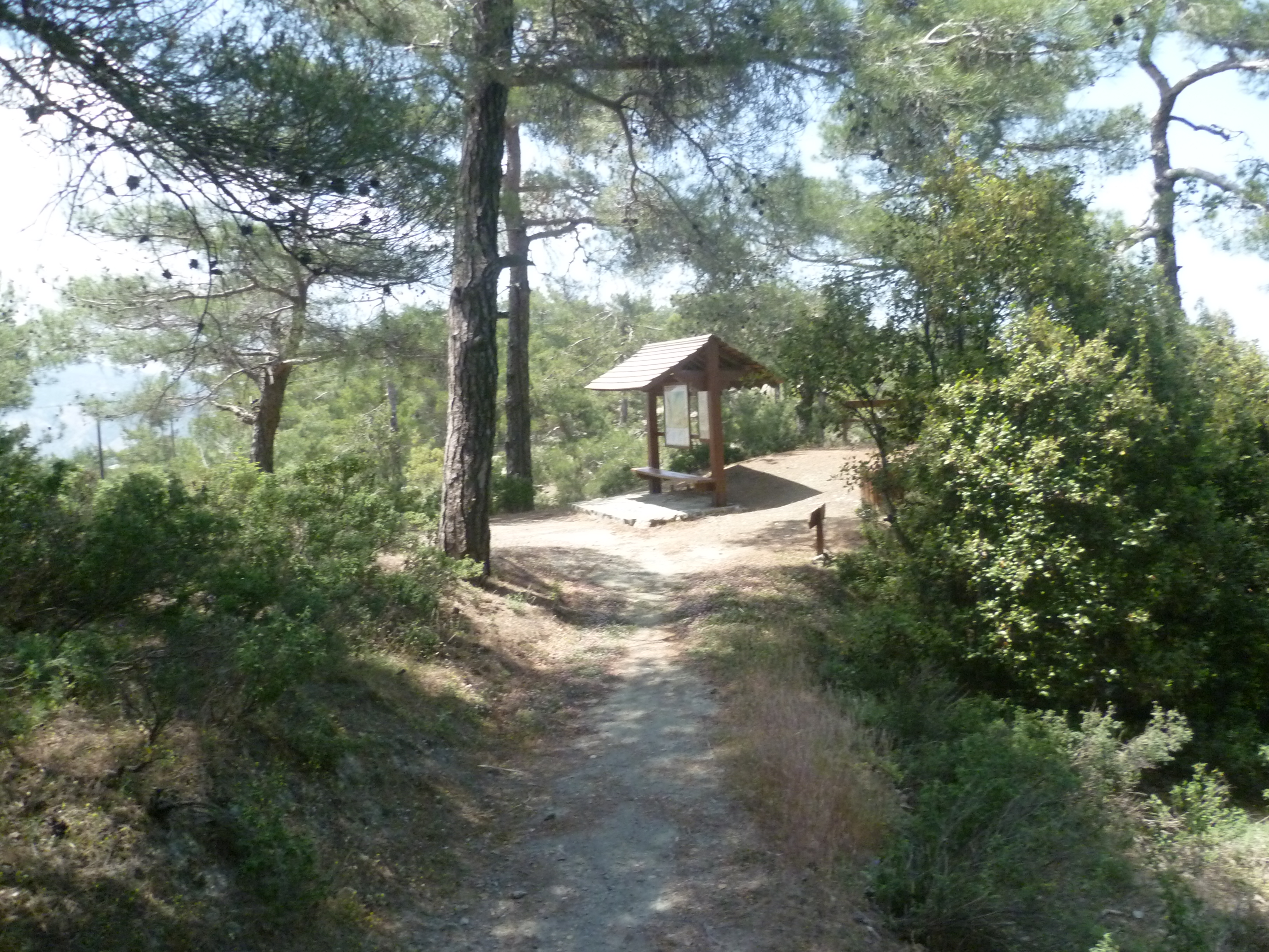 After 2 hours 30 minutes you will reach a nature trail board just below the fire station. GPS co-ordinates 34.956238N 32.957547E.
