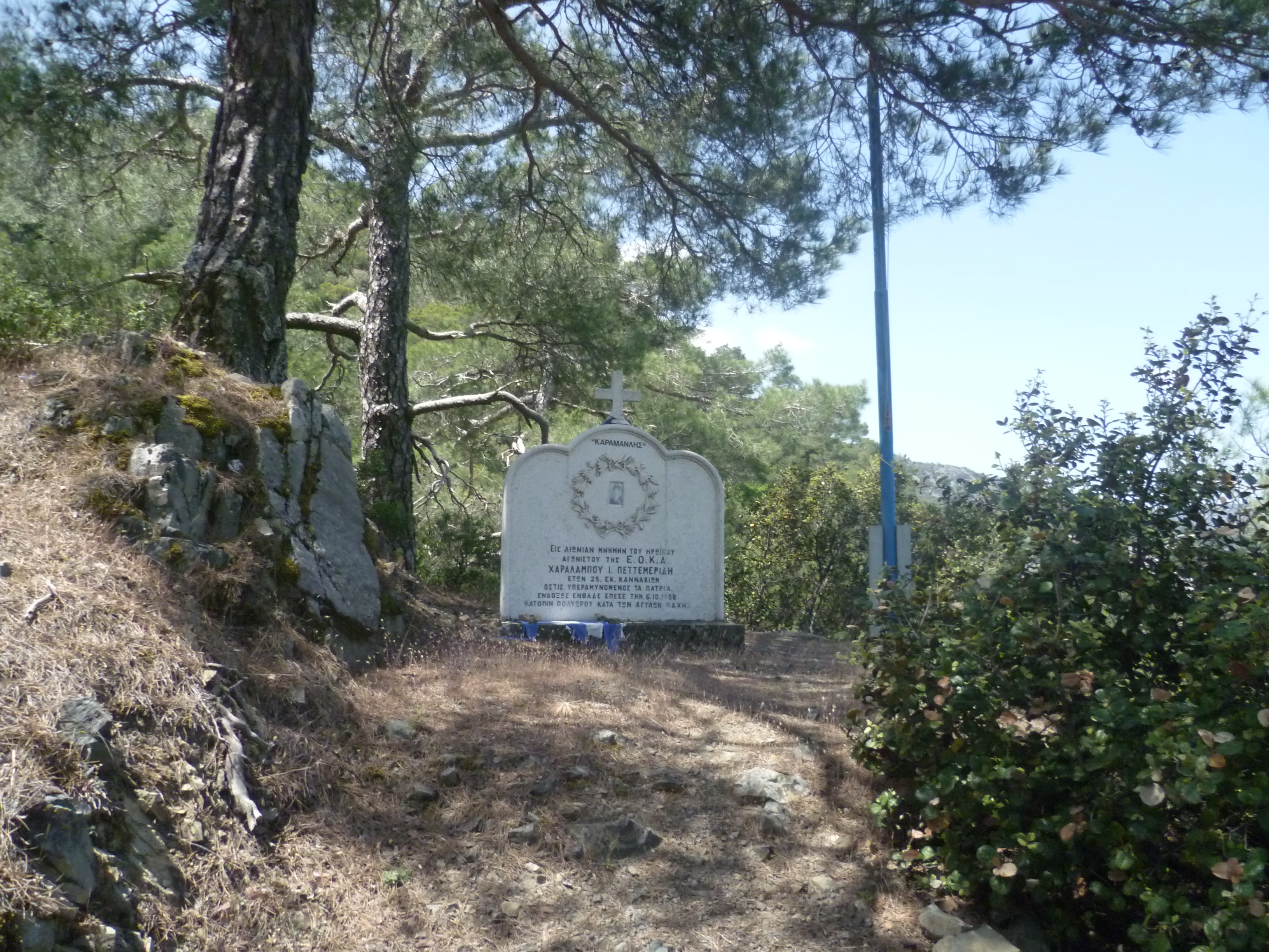 Take a couple of minutes to catch your breath and to look at the memorial to Charalambos Petmeridos who died in 1958, aged 25, fighting for EOKA.