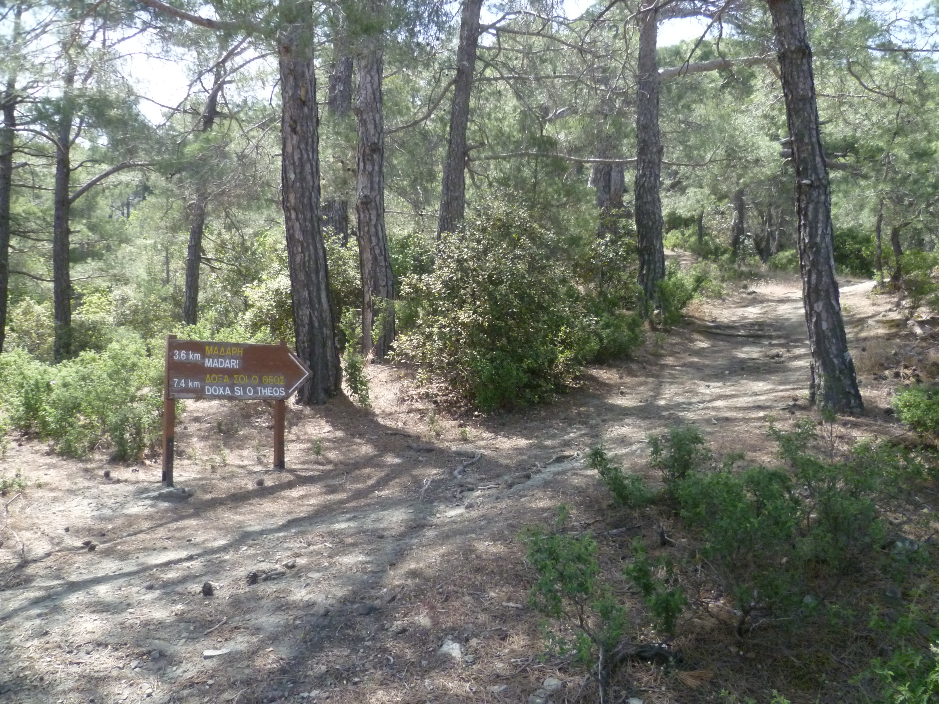 Then take the path to the left of the nature trail board which is signposted to ‘Madari 3.6 km & Doxa Si O Theos 7.4km’